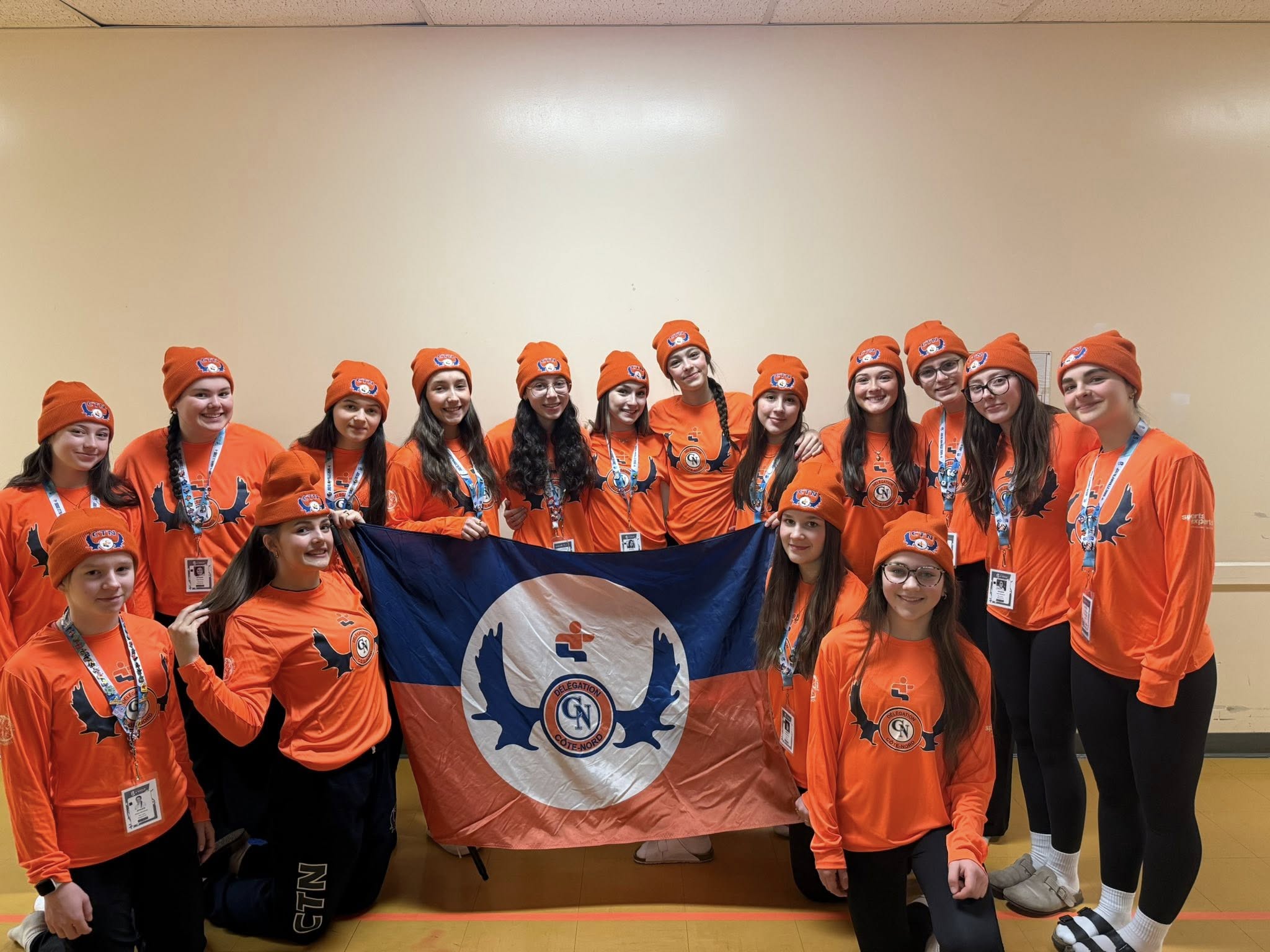 L'équipe de ringuette de la Côte-Nord joue son premier match aujourd'hui contre le Centre-du-Québec. (Photo Facebook) Les 46 athlètes du deuxième bloc de compétition ont quitté Sept-Îles dès 4h30 le matin hier pour arriver près de 12 heures plus tard à Blainville pour leur participation aux Jeux du Québec. Qu’importe la fatigue causée par plusieurs heures de route en autobus, les jeunes sportifs de la Côte-Nord sautent sur les glaces ou prennent leurs raquettes de ping-pong aujourd’hui.
